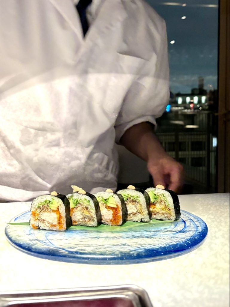 On commence doucement, mais sûrement, avec des makis de soft shell crab : croustillants, généreux, ultra réconfortants. Le genre de bouchée qui met tout le monde d’accord dès la première minute. Dans la foulée, un tataki de bœuf parfaitement maîtrisé, fondant, savoureux, juste ce qu’il faut de fraîcheur et de caractère.