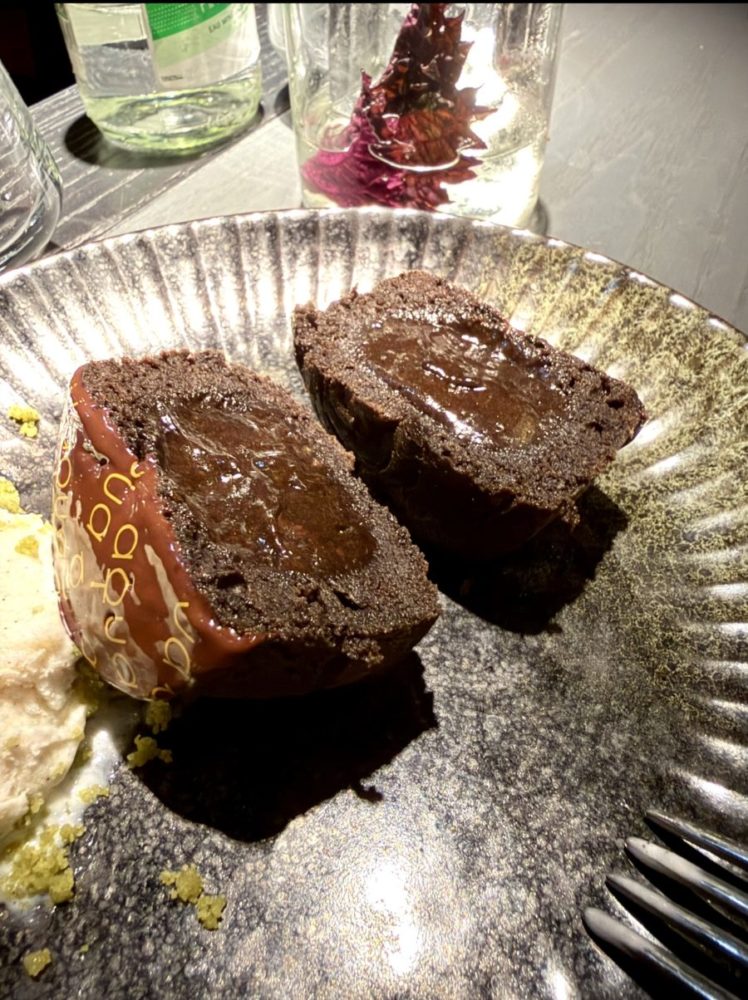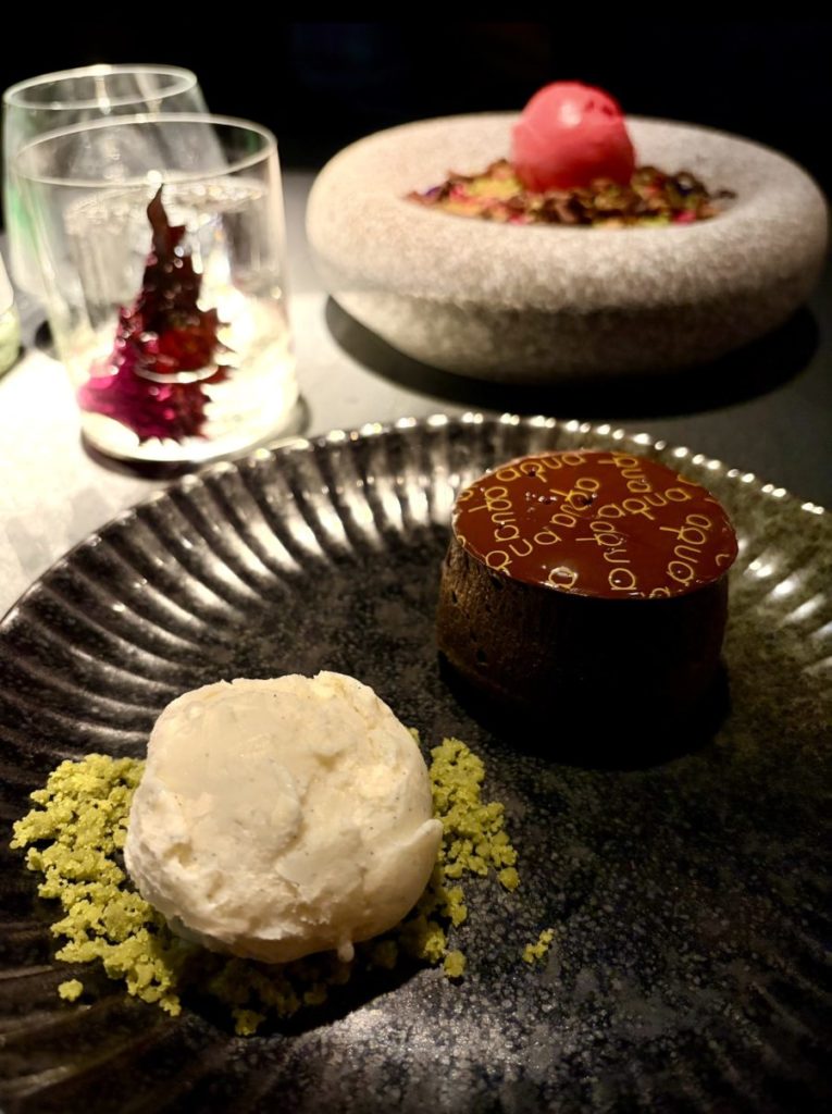 Et parce qu’un bon dîner mérite une vraie fin, les desserts arrivent comme un dernier clin d’œil. La Forêt de Kyoto, aussi belle que gourmande, et le fondant au sésame noir, intense, profond, pas trop sucré, viennent conclure le repas sur une note élégante et réconfortante.